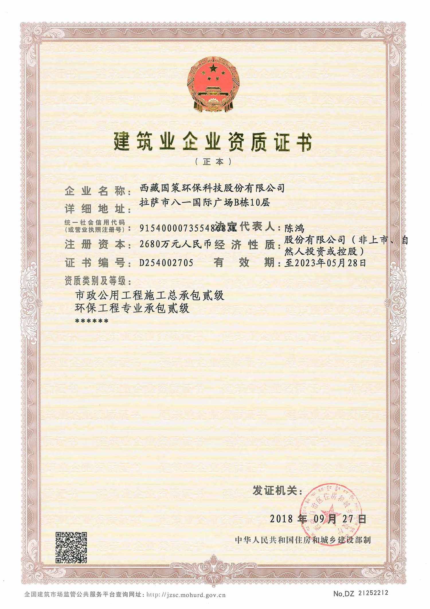 國策環(huán)保擁有住房和城鄉(xiāng)建設(shè)部頒發(fā)的建筑業(yè)企業(yè)市政公用工程施工總承包貳級(jí)資質(zhì)、環(huán)保工程專業(yè)承包貳級(jí)資質(zhì),同時(shí)擁有環(huán)保、市政、機(jī)電等各類專業(yè)工程技術(shù)人員共計(jì)40余人,并先后承擔(dān)了眾多污水廠、垃圾填埋場、自來水廠、醫(yī)療廢物處置中心等項(xiàng)目的施工任務(wù)。