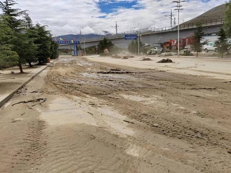 經(jīng)巡查,發(fā)現(xiàn)安徽大道、貢布路、G349國(guó)道等路段均有因泥石流造成的路面泥土、沙石堆積現(xiàn)象,嚴(yán)重威脅來(lái)往車(chē)輛及行人的出行安全。