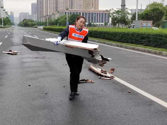 每年夏天臺(tái)風(fēng)天氣,暴雨過(guò)后,大量的泥沙、淤泥堆積在道路上,影響行人和車(chē)輛的通行。每當(dāng)這種時(shí)候禤艷輝總是身先士卒,帶領(lǐng)分公司一線工人排沙清道,第一時(shí)間將路面沙、泥、垃圾全部清掃干凈。
